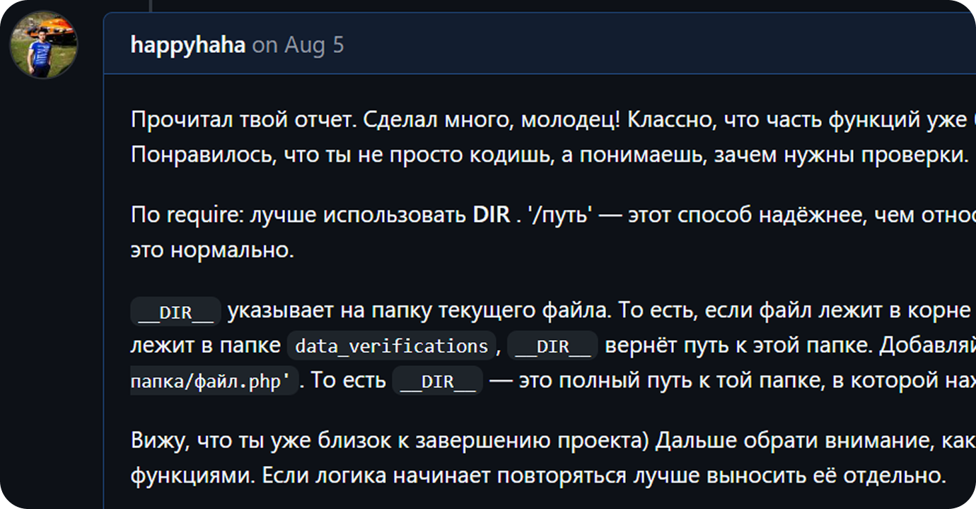 Когда человек приходит на программу, он обычно уже многое изучил — прошел видеокурсы, знает синтаксис, понимает, как работают массивы и функции. Но одно дело — знать, и совсем другое — уметь собрать все это в проект.