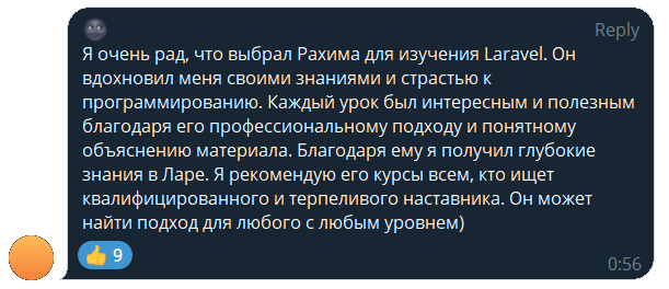 Хочется самостоятельно уметь писать код. Понимать ООП на практике. Использовать Laravel. Писать API. Спокойно читать документацию. Быть разработчиком. Работать.