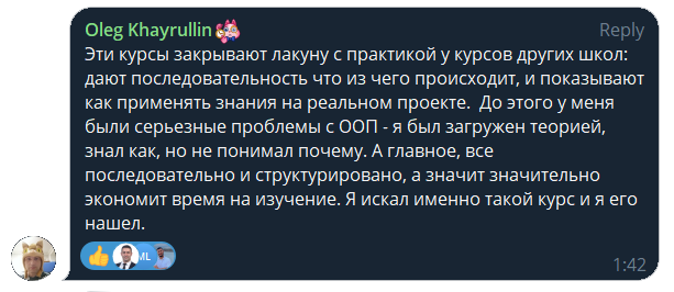 Обычно, новички-самоучки строят свое обучение вокруг видеокурса, и конкретных тем. Они много знают, но применить не могут. А мы делаем наоборот: ставим в центр на практику и общение с наставником.