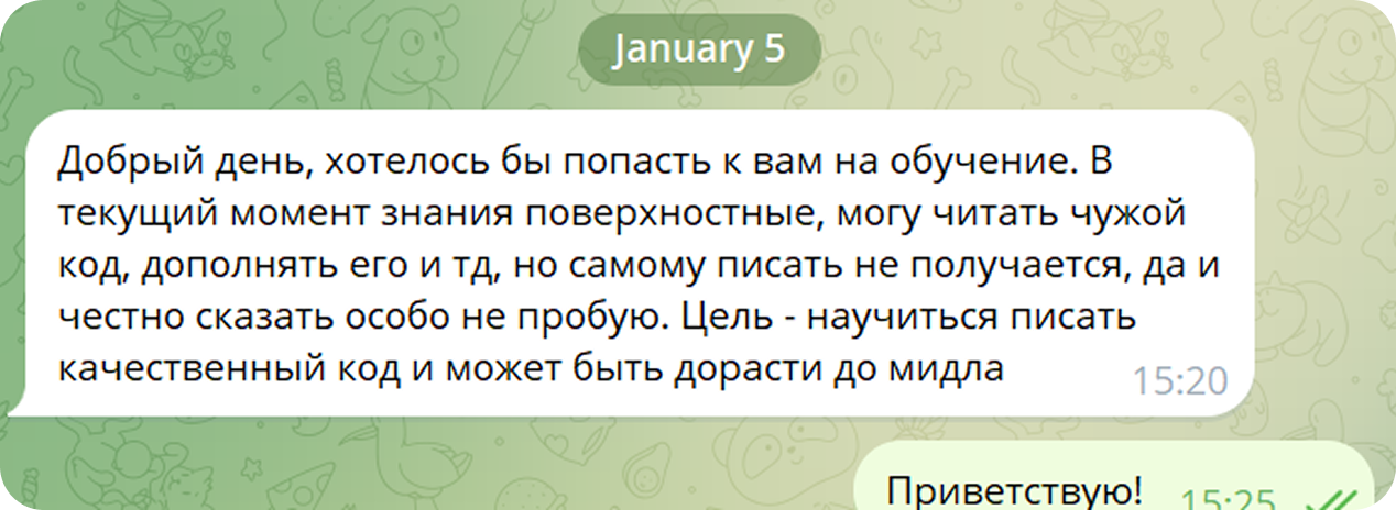 Ко мне обращаются новички, кто знает основы, но дальше уже сами не справляются. Их цель — трудоустройство.